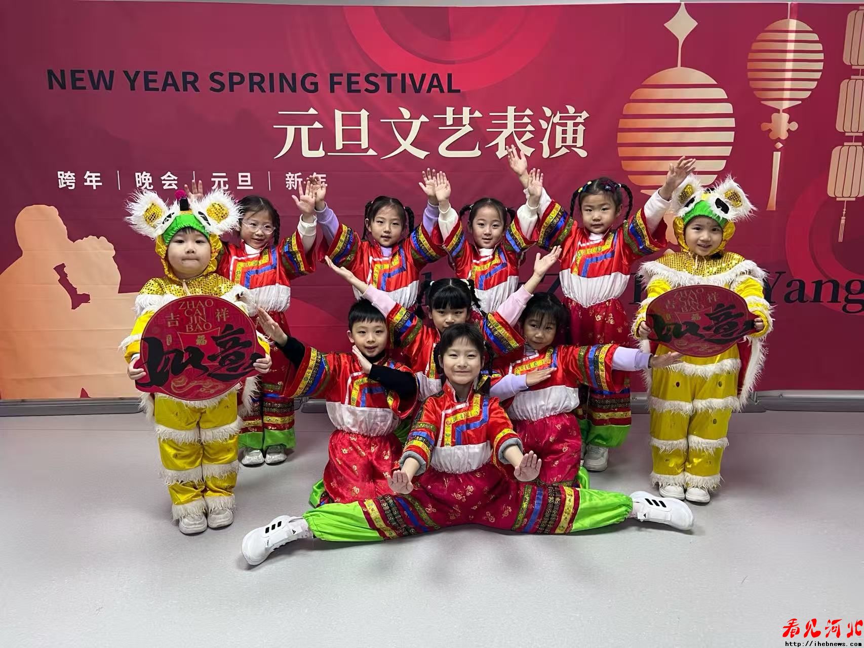 孩子们身着喜庆狮子服装,齐声向老人问好。随后献上舞蹈《说唱中国红》,灵动舞姿赢得阵阵掌声,老人们笑容满面,现场暖意融融。